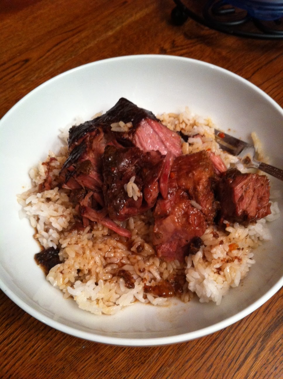 I get home and I’m slapped in the face with the awesome and I go into the kitchen and peer at the deliciousness through the lid of the crock pot. Sometimes, I taste the beef. Occasionally, I practice restraint. Then I put the rice in the steamer and set it to cook and go watch Gabba with Joshua. When Dan gets home, we eat. Then we try not to go back for seconds, remembering that the leftovers are either our dinner the next night or someone’s lunch.