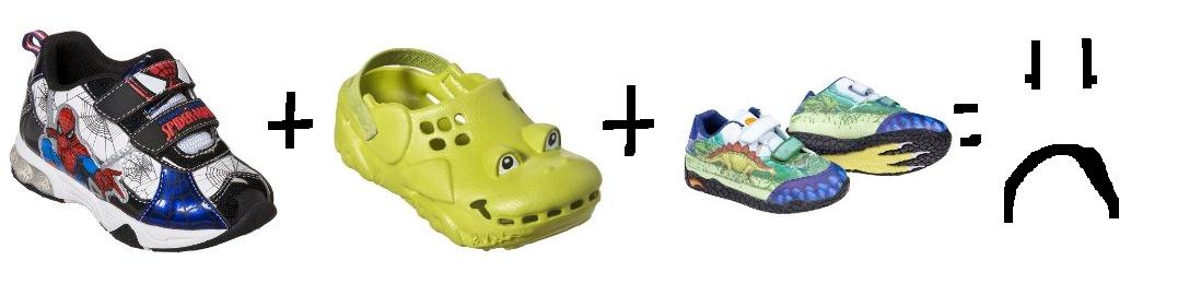 6. Ugly little boy shoes. Seriously? I do not get why it is so hard to make decent looking shoes for little boys. Girls get THREE AISLES of shoes at Target. Boys? Half of an aisle. Ladies, until this moment, I never realized how lucky we have it. Boys shoes? Ugh. I do not want things with lights. Or characters. Or lights AND CHARACTERS. Or Crocs of any sort. Or these horrid-zomg-run-away-screaming Dinosaur shoes.